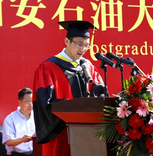 研究生導師代表、陜西省青年科技新星、校拔尖人才、化學化工學院陳剛教授勉勵研究生保持創新的思維和開放的精神,在今后的工作中從知識學習轉向問題研究,從學生氣質轉向學者品質,從理論受教轉向實踐創新,通過奮斗成就精彩人生。