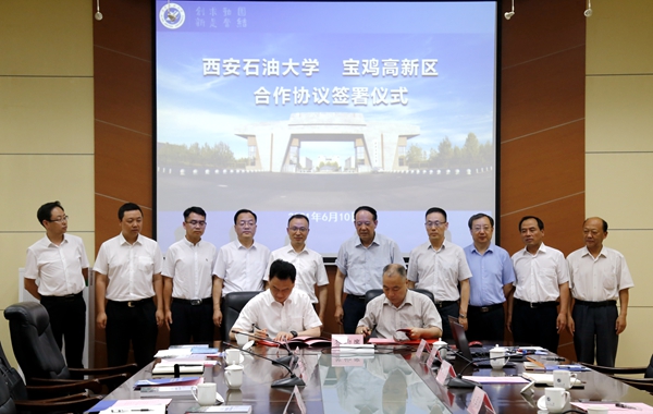 會議期間,李峰科書記代表寶雞高新區管委會,我校副校長陳軍斌代表學校,雙方簽訂了《寶雞高新區、西安石油大學校地合作框架協議》。寶雞巨成鈦業股份有限公司、寶雞市賽孚石油機械有限公司、寶雞宏信石油機械有限公司分別與我校機械工程學院、材料科學與工程學院簽訂了產學研合作及技術服務協議。雙方將在科學研究、成果轉化、人才培養等方面開展深入合作。協議簽署后,雙方相關部門負責人就科學研究、成果轉化、人才培養等方面進行了深入交流。