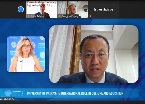 據悉,每年在帕特雷市舉行的希臘區域發展論壇是希臘中央政府、地方政府、學術界和商界代表之間對話的公共平臺。希臘總統Katerina Sakellaropoulou、總理Kyriakos Mitsotakis、歐盟委員會副主席argaritis Schinas及多個部門的部長出席今年的論壇。此論壇的2021教育分論壇由帕特雷大學主辦,除我校張榮軍副校長外,帕特雷大學學術和國際事務副校長Dionissios Mantzavinos、希臘教育部高等教育秘書長Apostolos Dimitropoulos、美國卡耐基梅隆大學教授Peter Adams等六位嘉賓先后發言。