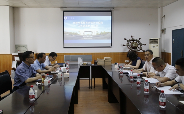 督導檢查期間,經濟管理學院黨委書記王宏衛、財務處處長范宏、馬克思主義學院黨總支書記張偉、地球科學與工程學院黨委書記馬行天,分別就本單位前一階段“文明校園”創建工作開展情況作了匯報。