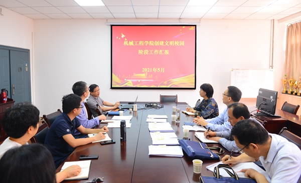 檢查組一行通過聽取匯報、調研交流、查閱材料等形式,詳細了解了后勤管理處、機械工程學院關于全省教育系統文明校園創建工作的宣傳教育引導、特色工作開展、軟硬件設施建設等情況,對后勤管理處、機械工程學院將“文明校園”創建工作與黨史學習教育、慶祝中國共產黨成立100周年、校慶70周年系列活動,與推進學科建設發展、加強新時代教師隊伍建設、推進平安校園建設等學校各項發展有機結合,并建立創建文明校園長效機制等做法給予肯定。