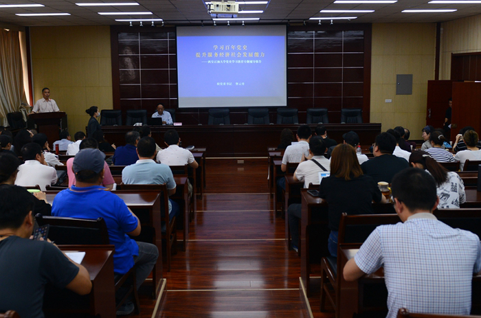 賽云秀書記結合習近平總書記在黨史學習教育動員大會上的重要講話精神,以高遠的政治站位、寬廣的理論視野、堅定的歷史擔當、明確的實踐要求,從“深刻領會關于黨史學習教育的講話精神”“準確把握開展黨史學習教育的重點內容”“全面落實開展黨史學習教育的工作要求”三個方面,系統講解了開展黨史學習教育的重大意義、全面解讀了開展黨史學習教育的重點內容和目標要求。強調要切實增強開展黨史學習教育的政治自覺、思想自覺和行動自覺,以史鑒今、資政育人,做到“學史明理、學史增信、學史崇德、學史力行”,進一步凝聚發展共識、汲取奮進力量,不斷推進學校事業高質量發展。