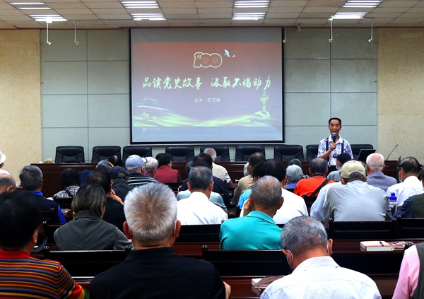 5月27日下午,蘇文甫副校長在雁塔校區第三會議室為離退休黨員講授《品讀黨史故事 汲取不竭動力》專題黨課,120余名老同志參加。