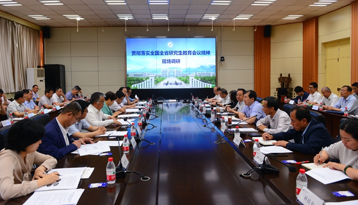 專家組通過聽取論文答辯、隨機聽課、交流座談、查閱資料、實地考察等形式認真調研了我校貫徹落實全國全省研究生教育會議精神情況。