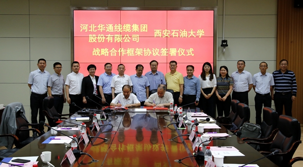 陳軍斌副校長與張文勇董事長分別代表西安石油大學和河北華通線纜集團股份有限公司簽署了校企戰略合作框架協議。協議中約定雙方今后將在科研合作與技術交流、人才培養等幾個方面開展全面合作。