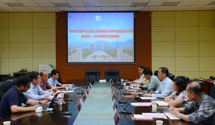 張榮軍副校長對雍瑞生副總經理一行的到訪表示歡迎,并介紹了學校的辦學歷史和基本情況,以及近年來取得的科研成果等方面情況。他表示,多年來學校與中石油安全環保技術研究院開展了深入的合作交流,積累了良好的合作基礎,適逢學校建校70周年,希望學校與安全環保研究院在共建實驗室、科學研究等方面進一步加強合作。