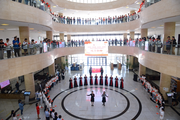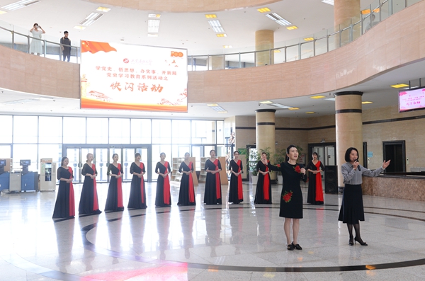 音樂系教師陳俊鳳、寇利利與合唱團演唱《唱支山歌給黨聽》