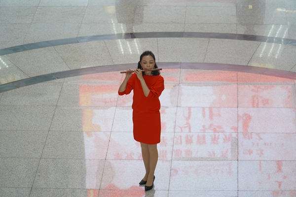 音樂系教師廖毅演奏竹笛拉開“紅色快閃”的序幕