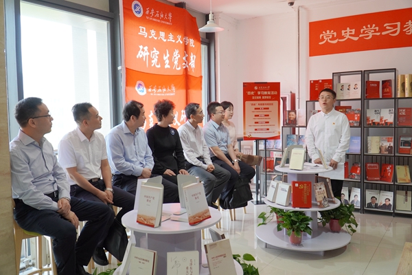 檢查指導過程中,陜西高校首批新時代黨建示范創建和質量創優工作標桿院系、地球科學與工程學院應用地球物理系教工黨支部書記趙軍龍,經濟管理學院馬克思主義研習社分社學生社團黨支部書記李卓錦就基層師生黨支部黨史學習教育開展與指導組作了現場匯報交流。