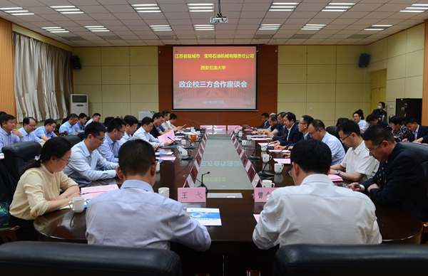 5月12日下午,我校與江蘇省鹽城市、寶雞石油機械有限責任公司政企校三方合作座談會在雁塔校區第一會議室舉行。校黨委書記賽云秀在座談會前會見了鹽城市政府副市長湯如軍、寶雞石油機械有限責任公司總經理忽寶民一行。校長李天太、副校長張榮軍出席三方合作交流座談會。會議由校黨委副書記雷西合主持。