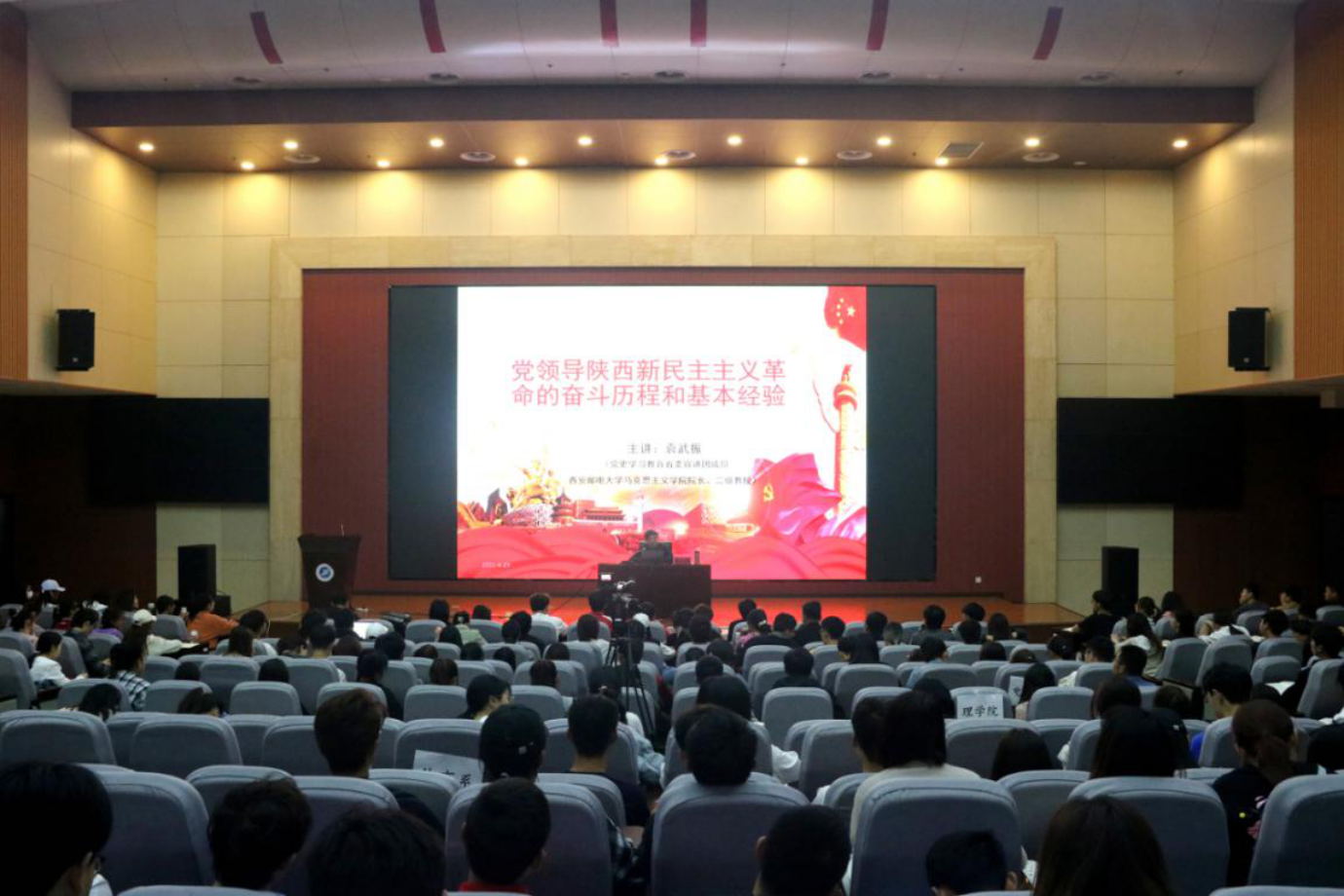 4月29日,黨史學習教育省委宣講團成員、西安郵電大學馬克思主義學院院長袁武振教授,在鄠邑校區弘石學術報告廳為我校第十三期“青馬班”學員作題為《黨領導陜西新民主主義革命的奮斗歷程和基本經驗》的專題報告。校團委全體成員、“青馬班”學員共計400余人參加了報告會。