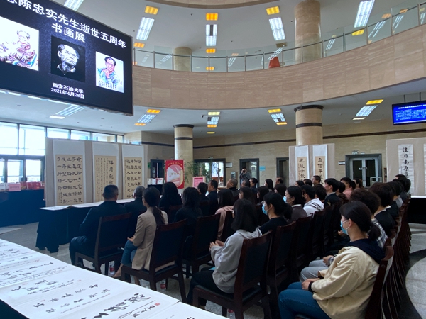 追思會后,舉辦了紀念陳忠實先生書畫展,展出了我校師生為緬懷陳忠實先生而創作的書法、繪畫和雕塑作品。程永清副校長現場為獲獎作品頒獎,鼓勵大家創作出更多的優秀作品,讓先生的風骨成為滋養石油學子的精神力量,在校園里傳承和弘揚。