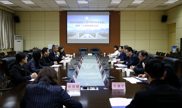 4月26日上午,西安文理學院黨委委員、宣傳部部長、科研處處長鮑鋒一行8人來校調研交流,座談會在雁塔校區會議中心第一會議室召開。副校長張榮軍出席會議,化學化工學院、電子工程學院負責人和科技處相關人員參加了會議。