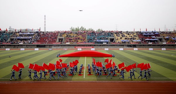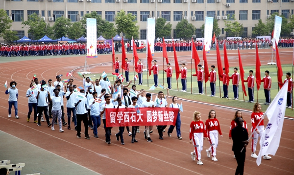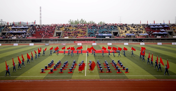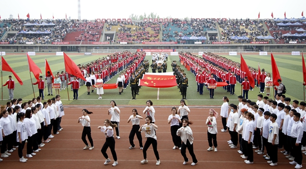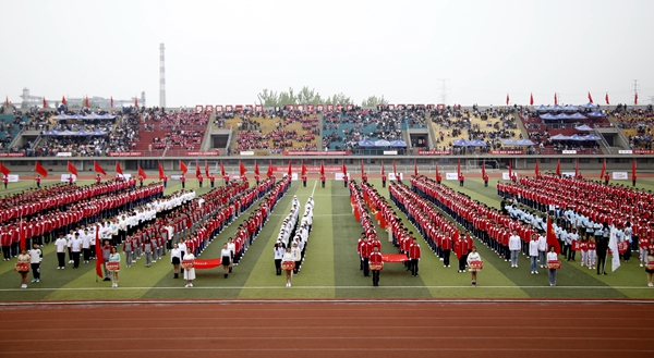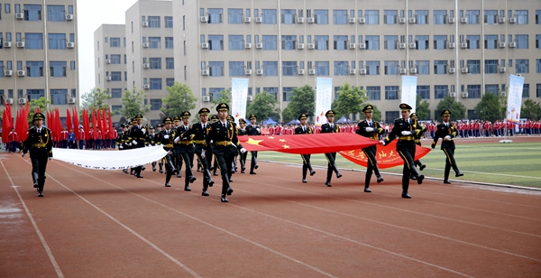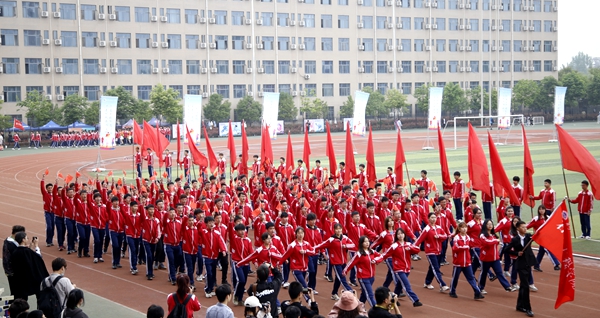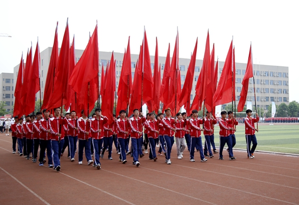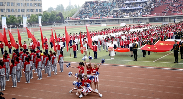 副校長、校體育運動委員會主任陳軍斌致開幕辭。他首先代表學校向運動會的開幕致以熱烈祝賀,向為本次運動會付出辛勤勞動的教職員工和同學們表示衷心的感謝。他談到,長期以來,我校高度重視體育工作,始終堅持“以人為本,健康第一”的體育教育思想,全面落實“健康教育、終身體育”的體育教學理念,充分發揮體育在學生成長成才和全面發展中的重要作用,營造了良好的校園體育活動氛圍。在過去的兩年里,學校各項體育競賽活動蓬勃開展,我校學子在眾多體育賽事中取得了優異成績,為學校贏得了榮譽。他希望望全體運動員遵守比賽規則,服從裁判,奮力拼搏,賽出水平,賽出風格,盡情體驗“更快、更高、更強”的奧運精神;全體裁判員在賽場上客觀公正,嚴格執法;希望全體工作人員積極工作,熱情服務,保證運動會順利舉行。