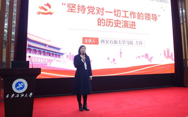 展示匯報系列活動面向全校教學一線教師,先后舉辦三場。馬克思主義學院左玲、石少虎、程麗玥、鄭偉四位思政課“大練兵”獲獎教師擔任主講。左玲老師以“堅持黨對一切工作領導的歷史演進”為題,闡述了堅持黨對一切工作的領導的歷史依據和制度安排,指出新時期要堅持和加強黨的全面領導,從嚴治黨。石少虎老師從馬克思主義當代價值的理論挑戰、理論捍衛和理論自信三個方面講起,分析了“馬克思主義當代價值的理論維度”。程麗玥老師從秋菊打官司講起,從認知、理解、態度三個層次闡述了權利意識,指出維護權利要認真務實、尊重他人、貢獻社會。鄭偉老師從《南京條約》簽訂的歷史背景和簽訂過程講起,闡述了《南京條約》的內容,分析了《南京條約》的簽訂帶給中國的深遠影響,希望我們以史為鑒,開創未來。獲獎教師代表程麗玥老師以《我不是一個人在“戰斗”》為題,與參會教師分享了心得與收獲。