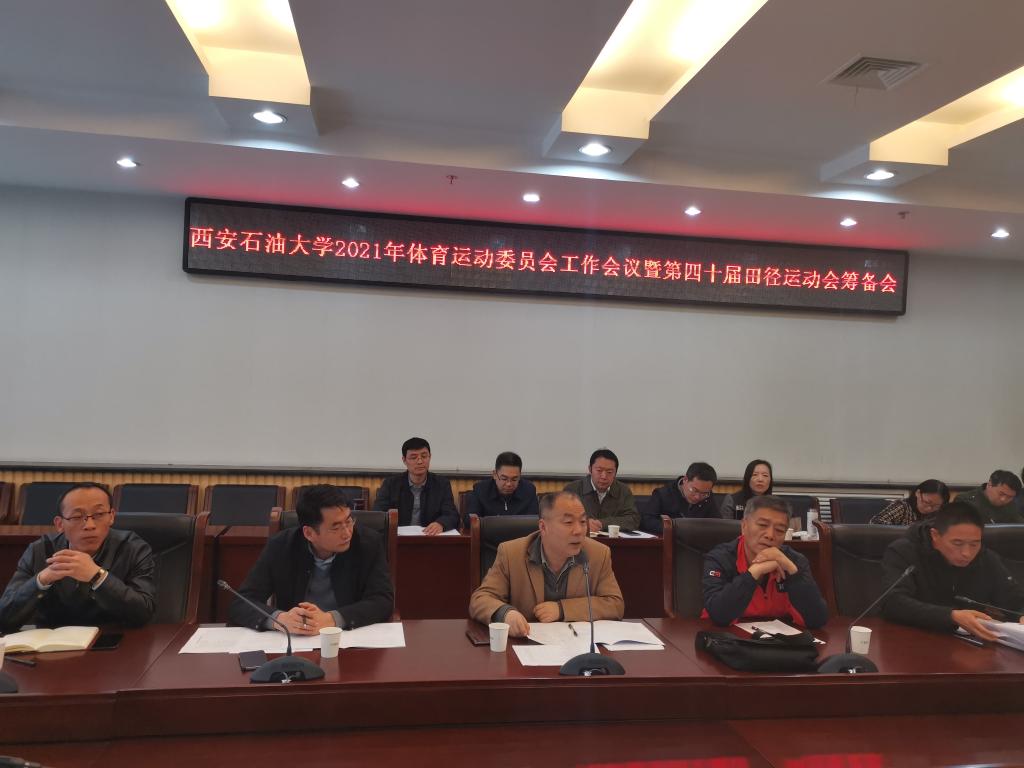 校體育運動委員會主任、副校長陳軍斌對學校2019-2020年體育工作取得的成績給予了充分肯定,對2021年全面提升學校體育教學質量和學生體質健康水平提出了具體要求,對第四十屆田徑運動會、教職工運動會的籌備工作及運動會期間的教學工作作了進一步的安排。他要求,各單位要嚴格遵守疫情防控各項要求,積極做好各項應對措施,通力合作,在確保師生安全和教學工作正常開展的情況下認真落實好運動會的各項計劃安排,辦好本屆學生和教職工運動會。同時,他要求各單位要積極配合好學生體質健康測試工作,盡快有效地落實好各項提升學生體質的具體措施,力爭2021年學生體質健康和學校體育工作實現全方位提升。