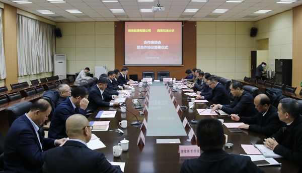 劉自強總裁對學校事業發展取得的成績表示祝賀,并從公司戰略規劃和未來發展方向兩方面介紹了公司的基本情況。他說,在西安石油大學學習的經歷,對自己和公司的發展都起到了非常重要的作用。西安石油大學為公司輸送了眾多優秀的人才,他們在企業發展中起到了重要的積極作用,如今都已成為公司中堅力量,這充分體現了西安石油大學在人才培養方面的優勢。他希望,雙方通過此次合作,積極推動非常規油氣勘探開發、地熱領域科學研究、人才培養交流、校園綜合服務平臺建設等方面深層次合作,推動雙方事業共同發展。