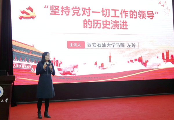 為深入學習貫徹習近平總書記在學校思想政治理論課教師座談會上的重要講話精神,促進思政課程和課程思政有機融合,3月12日下午,我校在雁塔校區學術報告廳舉辦首場陜西省思政課“大練兵”獲獎教師教學展示匯報活動。校黨政領導賽云秀、張木、陳軍斌、程永清出席活動。馬克思主義學院左玲、石少虎、程麗玥、鄭偉四位思政課“大練兵”獲獎教師,相關職能處室負責人,理學院、外國語學院等5個院系負責人和教師代表參加。程永清主持本次教學展示活動。