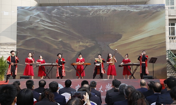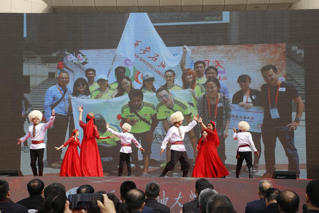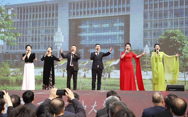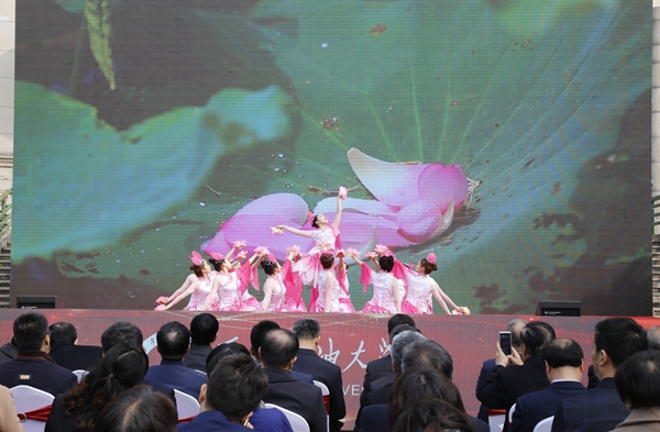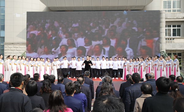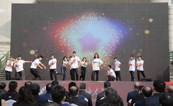 隨后,師生進行了精彩的文藝表演。校團委、大學生藝術團表演了古典舞《荷風盛世》、街舞《舞動青春》;音樂系師生表演了歌曲聯唱、器樂合奏《阿拉木汗》;國際教育學院的國際學生帶來了《土庫曼斯坦民族舞蹈》;校工會、教職工舞蹈協會表演了民族舞《山丹丹開花紅艷艷》;教授教師合唱團、音樂系啟航男聲合唱團演唱了《回娘家》。最后,70周年校慶啟動暨一號公告發布儀式在校歌《輝煌明天》中圓滿結束。