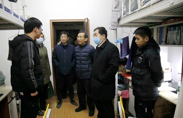 1月24日下午,校黨政領導李天太、張木、蘇文甫及相關部門負責人,對學校寒假期間新冠肺炎疫情防控工作進行檢查指導。