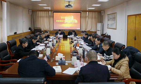 1月6日上午,校黨委理論中心組學習會議在雁塔校區行政樓五樓會議室召開,集中學習國家主席習近平二〇二一年新年賀詞、中共中央政治局2020年度民主生活會精神等相關內容。黨委理論學習中心組成員參加會議,黨委書記賽云秀主持會議。