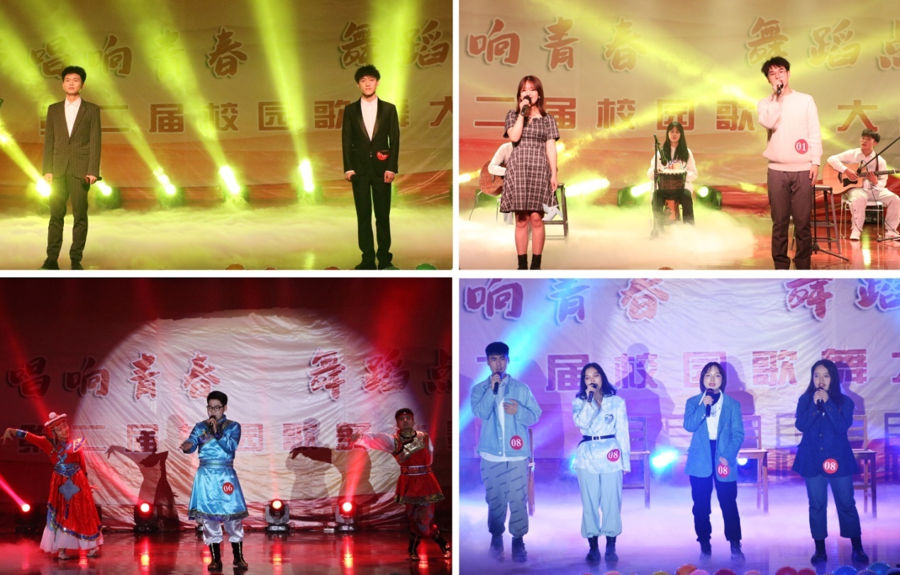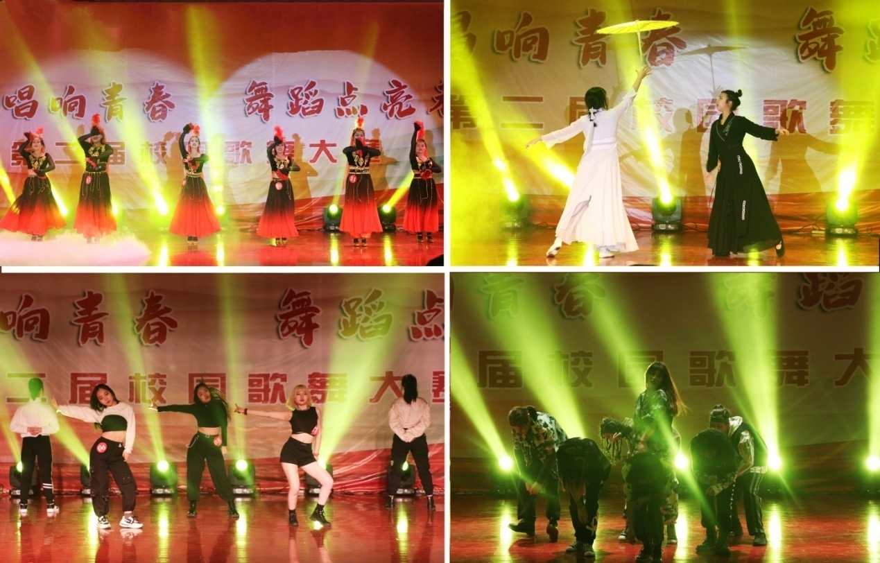 本屆校園歌舞大賽總決賽共分為“歌曲大賽”“舞蹈大賽”兩個篇章。在歌曲大賽篇章,各參賽選手們落落大方、深情獻唱,用音樂詮釋情感,用歌聲追逐夢想。杜許龍等同學與來自鄠邑區八丈寺小學的幫唱嘉賓合作的《少年錦時》曲調婉轉,讓大家感受到了“人無再少年”的淡淡情懷;羅昊天與石昌明同學的原創歌曲《錯》深情動人,讓現場觀眾沉浸其中;梁芊芊等同學帶來的《New York New York》節奏歡快,韻味十足;袁琪景等同學以一聲老腔喚醒三秦大地——《給你一點顏色》,將比賽氛圍推向了高潮。