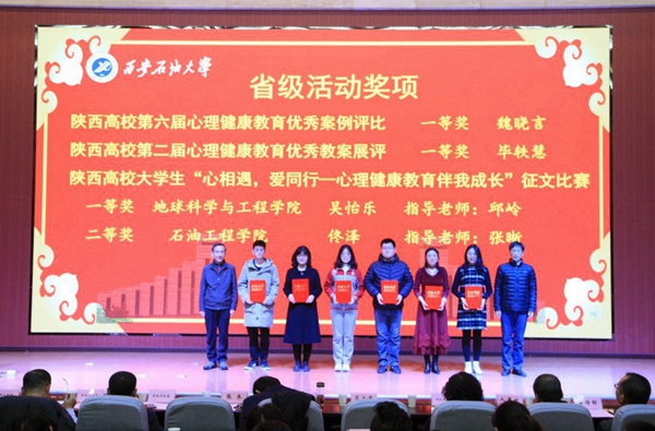 學生工作部部長趙健宣讀了《關于對2020“油緣心理”戰疫心理援助志愿者進行表彰的決定》《關于第五屆“陽光護航”心理育人宣傳季及第二屆“溫暖前行”心理健康文化節先進的表彰決定》以及《西安石油大學關于表彰首屆心理健康教學大賽獲獎教師的決定》。