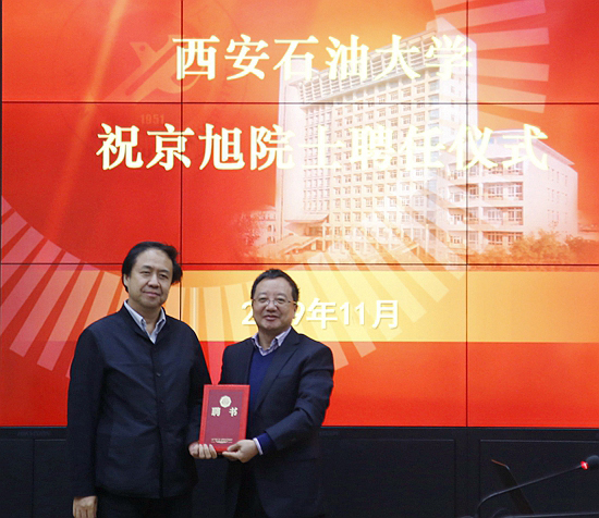 聘任儀式上,李華副校長為祝京旭院士頒發了客座教授聘任書和低碳能源化工工程技術研究中心聘書。