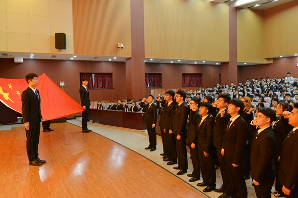 在大會第二階段會議上,經全體學生代表投票選舉產生了25位新一屆學生委員會委員,并在校團委書記、校學生會秘書長何國強的帶領下向國旗宣誓。