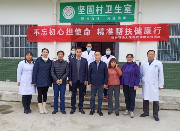 為切實解決老百姓看病難、就醫難的實際困難,10月29日,校醫院醫護人員在黨委副書記雷西合、副校長蘇文甫的帶領下,帶著藥品及血壓計、聽診器、心電圖、B超等診療機械,赴永壽縣永平鎮堅固村開展以“不忘初心擔使命、精準幫扶健康行”為主題的義診活動。永壽縣副縣長楊西鋒、永平鎮黨委書記烏佩艷到場看望了醫護人員。