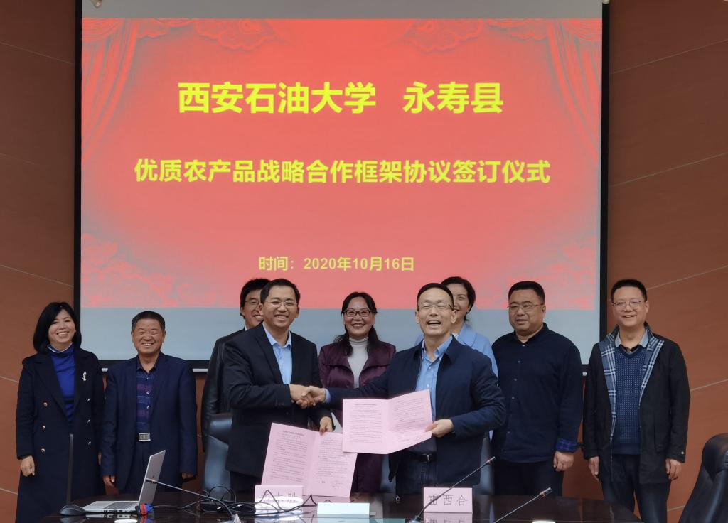 2020年10月17日是我國第七個扶貧日,第28個“國際消除貧困日”。為發揮產銷對接在產業扶貧中的重要作用,促進貧困地區特色優質農產品銷售,加快貧困群眾脫貧增收步伐,我校與永壽縣政府《優質農產品戰略合作框架協議》簽訂儀式于10月16日在雁塔校區會議中心舉行。我校黨委副書記雷西合、永壽縣政府副縣長辛本勝以及學校工會、永壽縣供銷社相關負責人參加簽約儀式。簽約儀式由校工會主席袁玎主持。