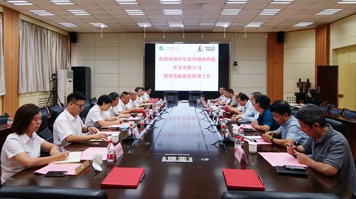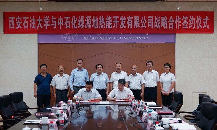 中石化綠源地熱能開發有限公司副總工程師韓惠奇、副總經濟師肖紅、生產技術部副經理楊衛、陜西公司副經理張獻喻;我校科技處、合作發展處、石油工程學院、地球科學與工程學院負責人和教師代表參加簽約儀式。