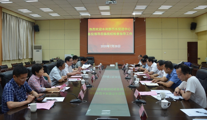 7月28日下午,水利部節水中心副主任劉國華,水利專家王家先、付新峰,陜西省水利廳節水辦主任吳萍,西安市水務局節水中心副主任張峰等一行八人來我校檢查指導校園節水工作。匯報會在雁塔校區第一會議室召開。我校校長李天太、黨委副書記張木,黨政辦公室、后勤管理處相關負責人參加會議。