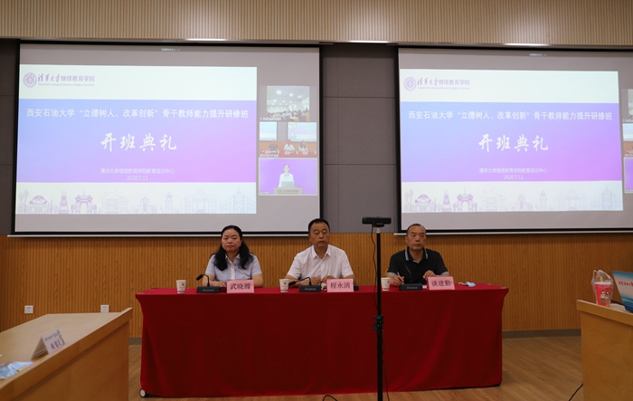 程永清在講話中對清華大學在師資力量和課程安排上給予的大力支持表示感謝,對我校教師疫情期間“停學不停教”、堅守教育教學一線的育人精神給予了肯定。程永清介紹了清華大學的歷史,指出清華大學不僅是國內頂尖大學,也是世界一流大學(最新數據顯示有13個學科居世界前十),更是新中國石油高等教育教師隊伍的重要源流。參加清華大學研修,不只是提高業務、接受熏陶,更是尋找初心、強化使命。對本次研修,他提出三點要求:一是提高站位,充分認識研修的必要性。習近平總書記在與北師大師生座談上提出“四有”好教師標準,古人也非常重視學習提升自己,《禮記·學記》說“學然后知不足,教然后知困。”大家要充分認識到研修學習的必要性,學以修身,學以益智,學以增才,好學才有真本領,好學才能避免少知而迷、不知而盲、無知而亂的困局。二是積極研討交流,達到碰撞思想、深化認識、提升能力的目的。《易經》中說“天地交而萬物通也,上下交而其志同也。”大家要加強與授課教師互動,學員之間要加強交流,通過研修進一步碰撞思想、用心交流、教學相長、學有所獲。三是遵守紀律,展現我校教師的良好形象和精神風貌。疫情期間開展研修,機會來之不易。大家要以身作則、服從管理,展現我校教師的良好形象和斗志昂揚的精神風貌。