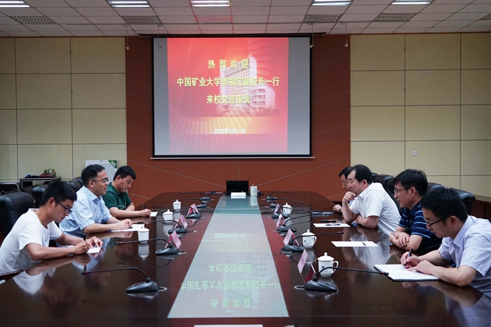 7月11日下午,中國礦業大學副校長周福寶一行3人來校調研走訪。座談會在雁塔校區第一會議室召開。校長李天太、副校長蘇文甫出席座談會。