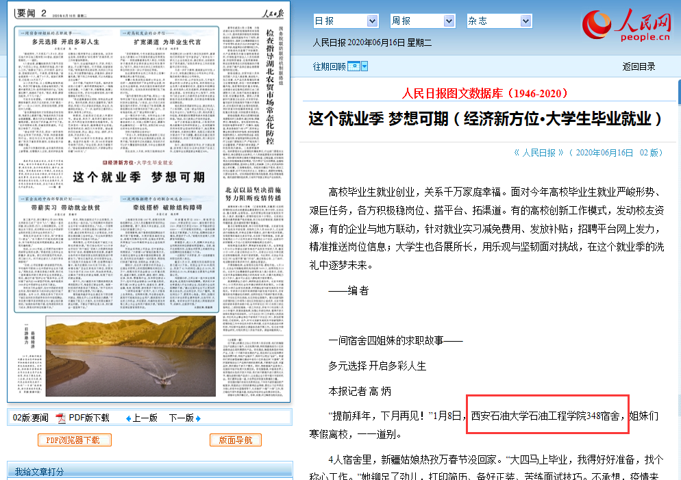 近日,《人民日報》2版以《一間宿舍四姐妹的求職故事——多元選擇,開啟多彩人生》為題,對我校石油工程學院348宿舍四姐妹的求職經歷進行了報道。