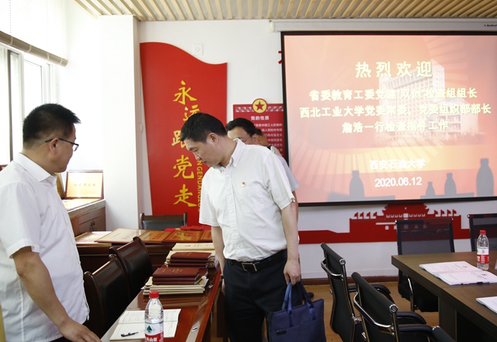 根據省委教育工委工作安排,6月12日下午,省委教育工委黨建“雙創”評估驗收工作組第二組組長,西北工業大學黨委常委、黨委組織部部長詹浩等一行4人前來我校檢查指導學校黨建示范創建和質量創優工作完成情況。檢查驗收工作會在雁塔校區第一會議室召開,校黨委副書記雷西合主持會議。學校相關職能部門負責人,入選教育部和全省高校黨建標桿院系和樣板支部培育創建單位負責人及相關工作人員參加會議。