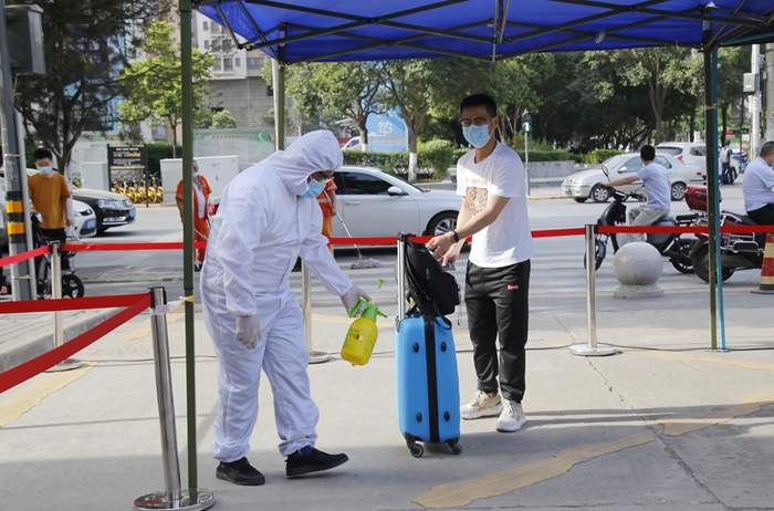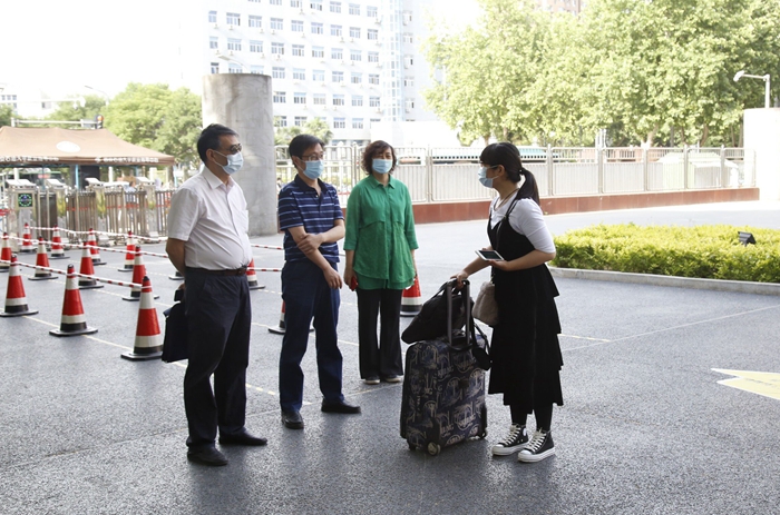 學校領導到報到區迎接返校同學,對返校同學表示歡迎,希望同學們返校之后繼續做好自我防護,珍惜在校時光,安排好自己的學習、科研工作及日常生活。