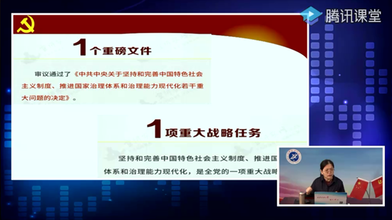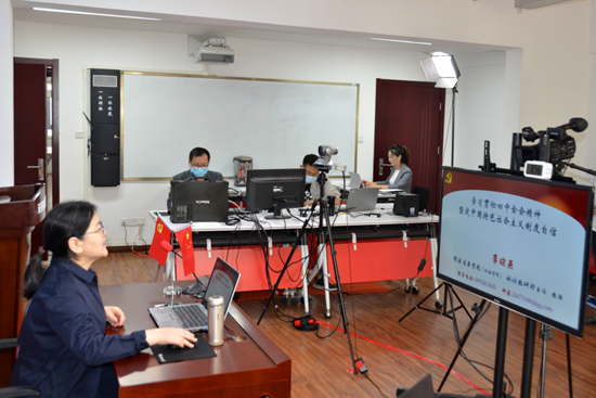 按照培訓課程安排,陜西省委黨校(行政學院)李曉燕教授為參訓學員作了題為《學習貫徹四中全會精神,堅定中國特色社會主義制度自信》的第一堂專題講座。