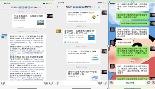 為了緩解2020屆畢業生因疫情導致的就業不便,民族生教育管理辦公室一方面加大幫扶力度,為畢業生多方搜集、轉發各級各類線上招聘信息,目前提供各級各類信息48條。同時,開設線上求職咨詢平臺,隨時隨地為民族生有針對性地解答相關就業困惑,為順利就業提供幫助和指導。
