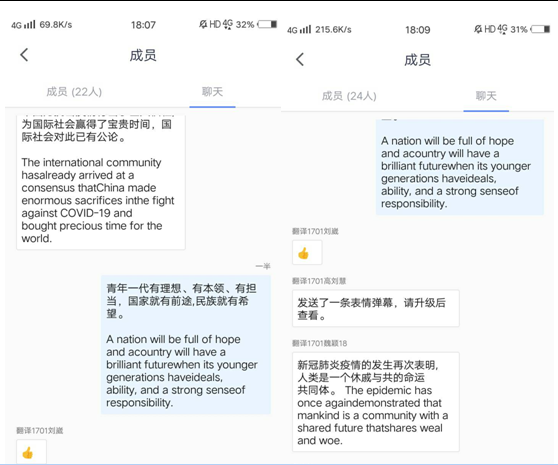 為了激發學生學習興趣,提升專業水平,學院團委組織開展了各年級“雙語學”主題班團會,集體學習《中國日報China Daily》頭條英文播報中《習近平總書記給北京大學援鄂醫療隊全體“90后”黨員的回信》雙語版,將總書記給青年的兩篇回信結合起來學,要求每位同學撰寫心得體會,分享交流,做好思想引領與啟迪。