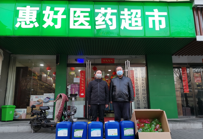 2月4日,西安惠好醫藥有限公司總經理喬元平向我校捐贈了醫療防控物資。這批物資包括酒精20公斤、過氧乙酸50公斤、84消毒液50公斤、體溫計10支、測溫槍2支、噴壺43個,將全部用于學校疫情防控第一線。這批物資是我校接受的首批社會愛心捐贈,對于西安惠好醫藥有限公司總經理喬元平的善舉,國有資產處處長侯琦表達了誠摯的感謝。
