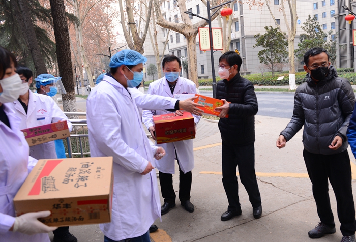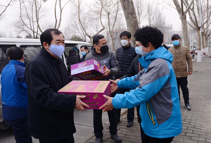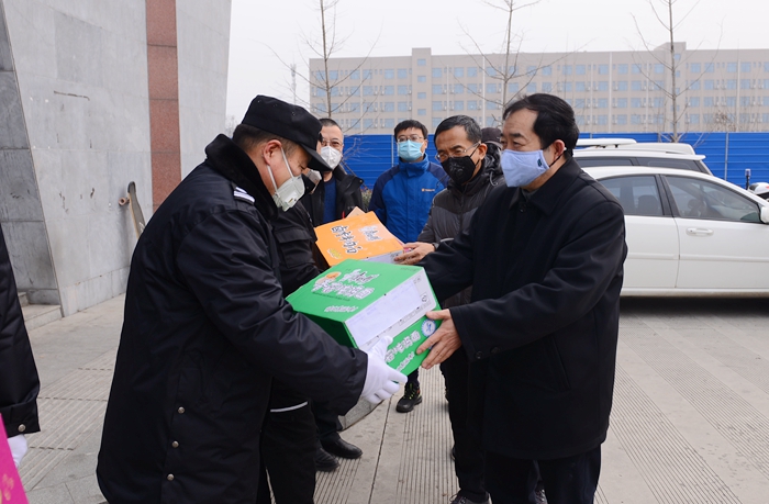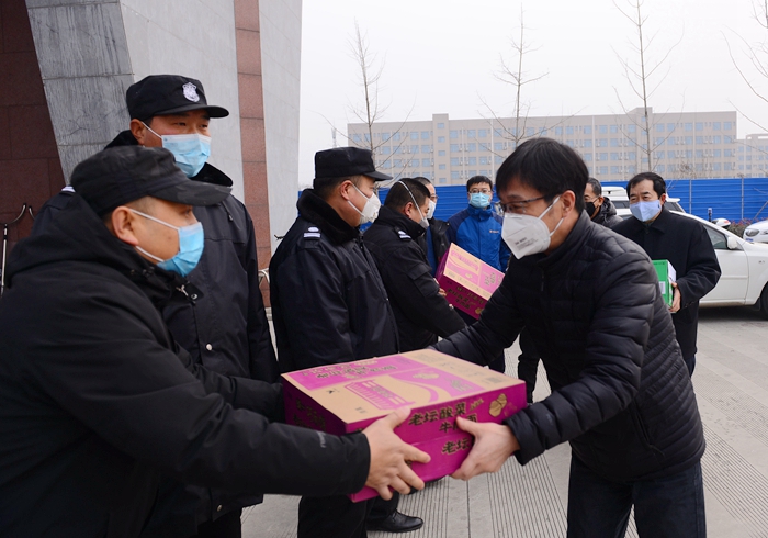 2月1日下午,學校疫情防控工作領導小組組長、校長李天太,領導小組副組長、校黨委副書記張木,領導小組副組長、副校長蘇文甫在黨委組織部、紀委監察處、保衛處、后勤管理處等部門負責人陪同下,看望慰問了疫情防控一線的工作人員。