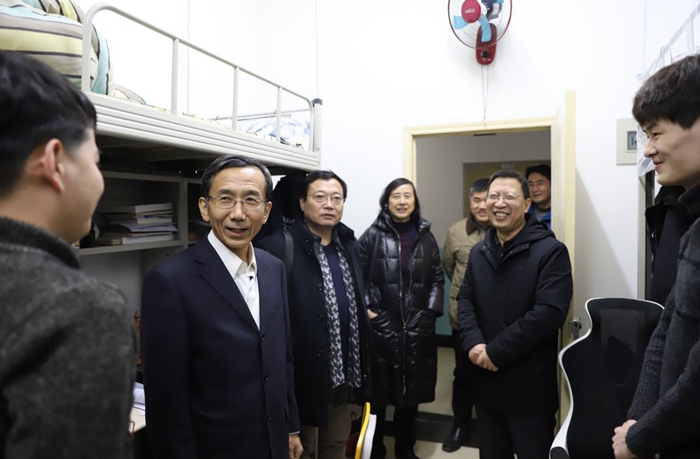 2019年12月31日晚,校黨委副書記張木帶隊深入鄠邑校區學生宿舍、大學生學習服務中心,走訪慰問元旦假期留校學生,代表學校向大家致以新年的問候。鄠邑校區管理辦公室、學生工作部、研究生工作部和相關院(系)負責人陪同走訪。