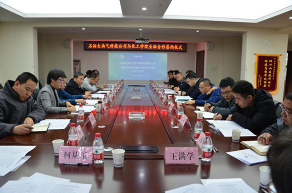 在科研合作交流環節,西安石油大油氣科技有限公司副總經理張杰、化學化工學院副院長蘇碧云分別就公司核心技術和學院科研方向及優勢作了介紹。公司總經理助理張婷婷、技術總監及技術骨與化學化工學院專家教師代表陳剛、賈新剛、燕永利、屈敏佳、柯從玉、王滿學就常規化工產品研發、評價,以及對表活劑、破乳劑等研究領域進行了深入研討交流,達成了初步合作意向。