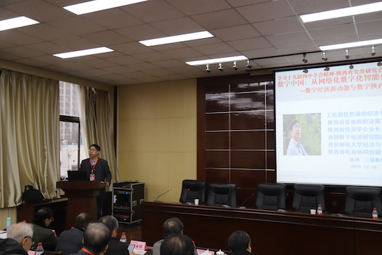西安郵電大學經濟管理學院院長、陜西省經濟學學會會長、陜西省改革發展研究會副會長張鴻做題為《陜西省數字經濟發展研判及思路》的學術報告。張鴻院長認為陜西省實現經濟多元化發展、經濟數字化轉型升級的關鍵,是對當前經濟發展形勢的預判,建議充分發掘產業潛能、關注數字化產業;善于利用信息技術、數據追蹤,使運行更加高效透明。