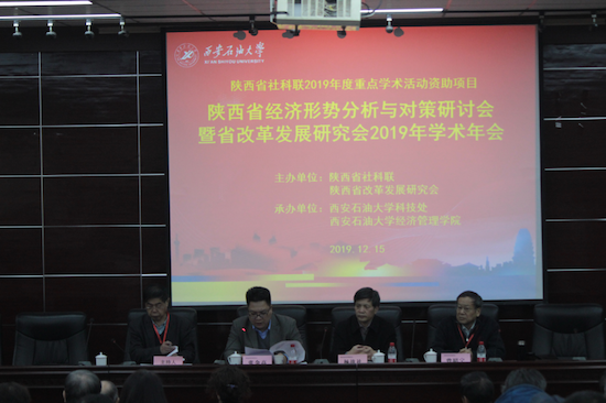 12月15日下午,陜西省經濟形勢分析與對策研討會暨省改革發展研究會2019年學術年會在雁塔校區第五會議室召開。本次會議由陜西省社科聯、陜西省改革發展研究會主辦,我校科技處、經濟管理學院承辦。陜西省社會科學界聯合會學會部張金高部長、我校楊戰社副校長、陜西省改革發展研究會曾昭寧會長出席此次會議,陜西省改革發展研究會專家顧問、會員,西安交通大學、西北農林科技大學、陜西師范大學、西安工程大學、西安財經大學、陜西科技大學、安康學院等省內高校學者等百余位嘉賓參加此次會議。