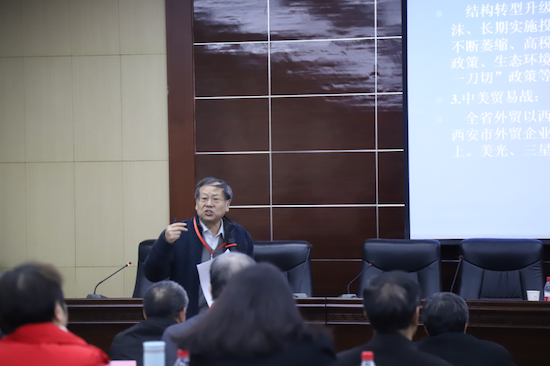 陜西省改革發展研究會會長、我校經濟管理學院教授曾昭寧做題為《陜西2019前三季度經濟下滑的原因分析和對策》的學術報告。曾昭寧教授認為陜西省工業結構單一、抗風險能力較弱;若經濟發展長期完全寄托于投資拉動,則風險較高,建議去產能、加快工業轉型升級的步伐,立足于現實考慮、做好新舊動能的銜接工作,經濟增長方式由投資拉動盡快轉為創新驅動。提出加快工業轉型升級、重點優化投資結構、提升民營科技型大企業在創新驅動中戰略定位等對策建議。