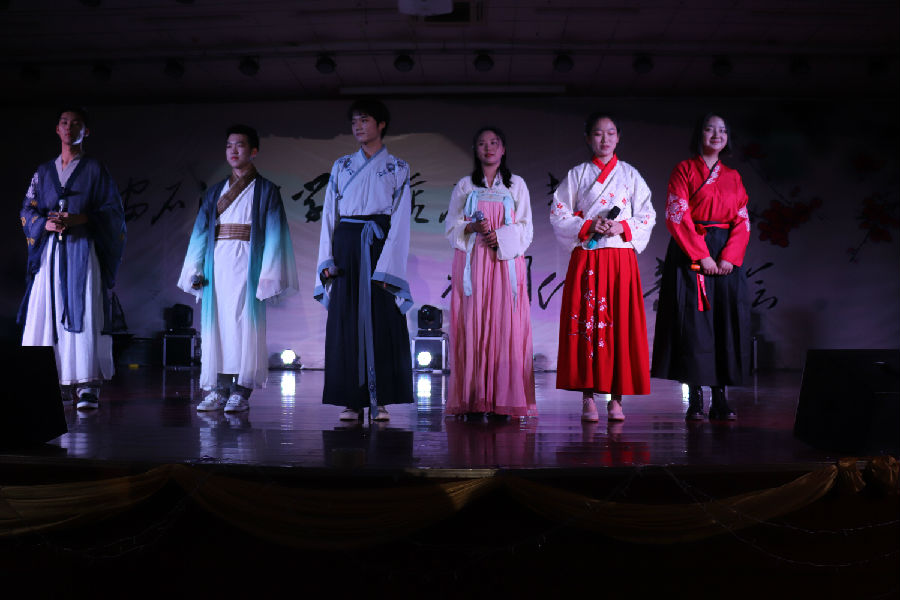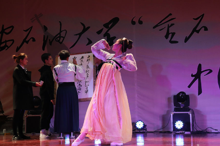 接下來音樂會正式開始。一首婉轉悠揚的陜北民歌《叫一聲哥哥快回來》將我們帶入傳統民族音樂氛圍中;接著又是動態美與民族美的結合,哈薩克族的同學們獻出動感十足的民族舞蹈;長笛與二胡奏出一曲“美麗的神話”;人文學院與材料學院同學合作演出京劇《春閨夢》;藏族姑娘卓爾丹舞出莊重優美的《轉山》,新疆小伙彈著冬不拉唱起《明月思故鄉》……最后,人文學院盧強老師帶領兩位學生在動聽的中國古典音樂和舞蹈的背景下揮毫潑墨,創作了精彩的書法作品。