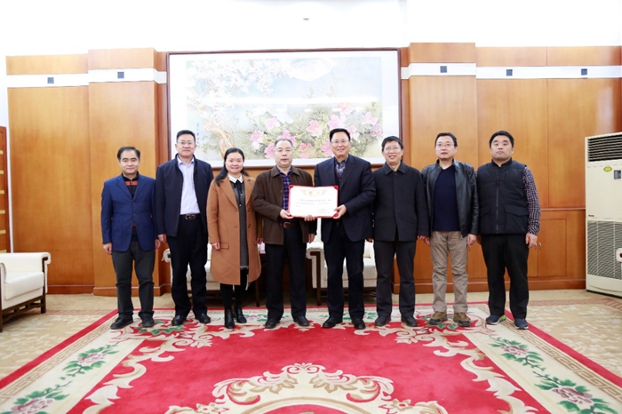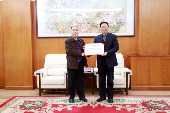 聘任儀式上,陳軍斌副校長為劉玉強教授頒發了兼職教授聘書,并代表學校對劉玉強教授受聘為我校兼職教授表示熱烈歡迎。陳軍斌副校長向劉玉強教授介紹了近年來我校地球科學與工程學院在教育教學、人才培養、學科建設等方面取得的成績以及今后努力的方向。